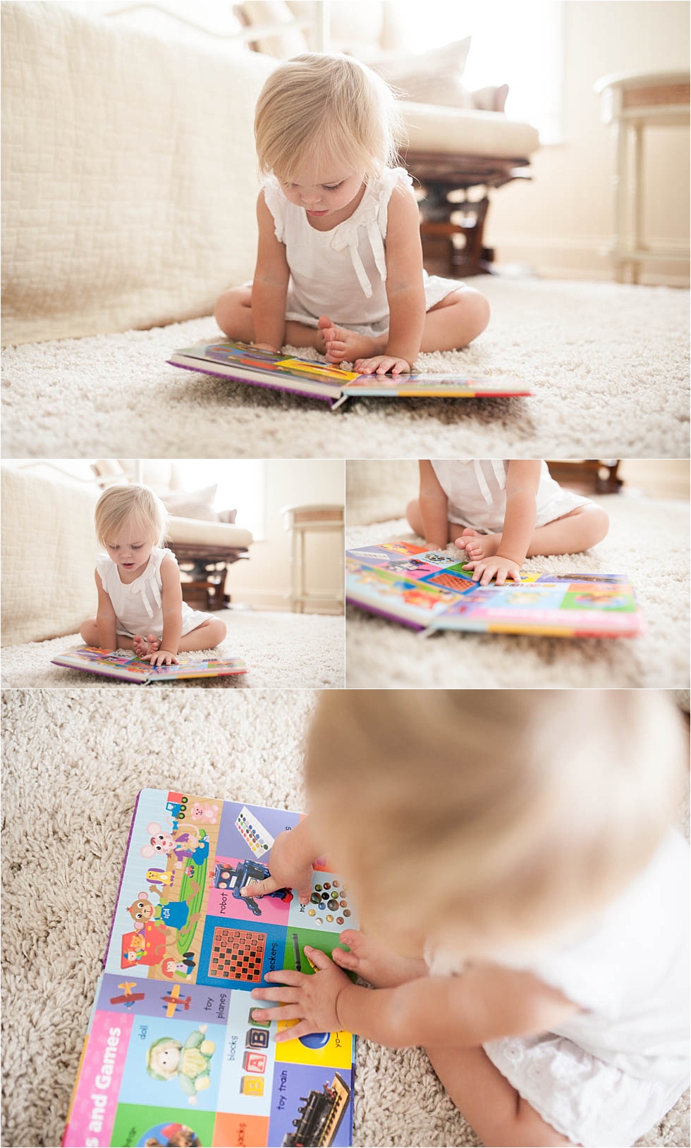 I have a running to-do list of things that never seem to get accomplished. I know many of you can relate. One of those things is updating the baby book…every time I see it on my list, I can’t even believe how much time has passed since the last time I opened it to write. It’s times like this, times of guilt that I think my baby will never know how much I truly loved her and I won’t remember what she’s doing at these fun ages, that I am so thankful for my photography and the joy I get out of documenting her this way. I may have long-overdue empty lines on the “My Firsts” page, but when I look back at the photos I’ve taken of her over the months that have flown by, I remember those first like they were yesterday. Yesterday there were no firsts, just lots of the same. And I want to remember that, too.